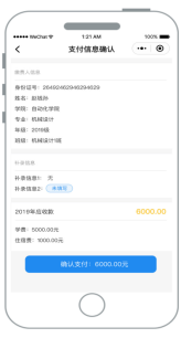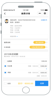 Step2:勾选本次缴纳的项目,点击“结算”,在缴费信息确认页面检查个人相关信息无误后点击“确认支付”,再选择支付方式:微信支付,进入微信官方界面完成支付。